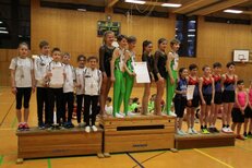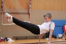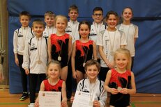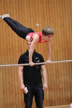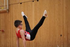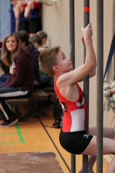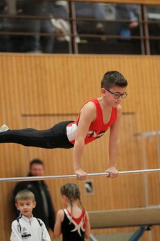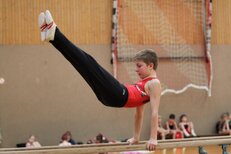 Am Vormittag war man bei den Jungen in reinen Turnwettkämpfen mit den Jahrgängen 2005 und jünger dabei. Im vergangenen Jahr hatte man als Landessieger auch beim Rhein-Main-Donau-Cup die Vertreter aus Bayern und Baden-Wttbg. hinter sich gelassen und den Pokal zum 3.Mal für Bad Bergzabern gewonnen. Leider beteiligen sich in dieser schwierigen Sportart Turnen nur wenige Mannschaften (in diesem Jahr sechs Mannschaften aus Rheinland-Pfalz), aber es fehlt nur die Masse, nicht die Klasse. Dass die stärkste Konkurrenz in diesem Jahr aus Ludwigshafen-Oppau kommen würde, wusste man bereits. Schließlich kennt man sich seit Jahren aus vielen Wettkämpfen, teilweise trainieren die Bergzaberner auch gelegentlich in Oppau. Begonnen wird mit dem schwächsten Gerät der Kurstädter, dem Pferdsprung. Alle zeigen konzentriert gute Sprünge, Lennart Hölzmann erreicht sogar 15,55 Punkte von der Maximal-Zahl 16,00. Und im Mannschaftsergebnis 59,90 Punkte gegenüber 59,15 Punkte von Ludwigshafen. Barren, nächstes Gerät, eine sichere Bank im allgemeinen, aber heute haben auch die Oppauer zugelegt, Gleichstand, beide 58,90 Punkte. Reck sollte eigentlich entscheiden, Lennart turnt die Maximalpunktzahl von 16:00 Punkte, Konrad Beck mit 15,80 Punkten nicht viel weniger, aber insgesamt erbrachte das Gerät nur 0,25 Punkte mehr als Ludwighshafen-Oppau. Vor dem letzten Gerät, dem Bodenturnen, hatte Bad Bergzabern einen Vorsprung von 1,00 Punkte, nicht viel, wenn man bedenkt, wie schnell man verturnen kann. Im anderen Wettkampf der Älteren hatte ein Spitzenturner sich am Barren verturnt, und damit den ersten Platz vergeben. Am Boden erhielt man keine Spitzenwertungen, aber alle Turner hatte eine gleichwertig hohe Note, allerdings auch bei Lu-hafen das gleiche Bild. Bad Bergzabern konnte seinen Vorsprung um 0,4 Punkte ausbauen. Landestitel, und die Qualifikation im Mai in Bad Kreuznach, wie im Vorjahr. Wird auch die Titelverteidigung wieder gelingen?