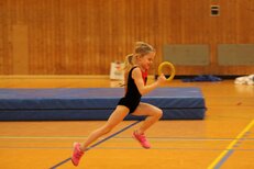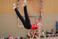 Die Mädchen des Alfred-Grosser-Gymnasiums Bad Bergzabern mussten am Nachmittag gegen 18 weitere Mannschaften antreten, darunter die Siegerinnen aus dem vergangenen Jahr, das Purrmann-Gymnasium Speyer, die in Berlin den zweiten Platz belegt hatten. Die Gerätebahn B und die Sonderprüfungen erbrachten einen 5.und 6. Platz, insgesamt war es dann der siebte Rang in der Endabrechung. Und die Mädchen aus Speyer fahren wahrscheinlich wieder nach Berlin.