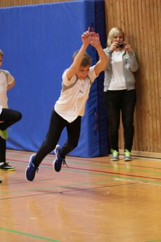 Die Grundschulen starten in Wettkampf IV,2, der aber nicht nach Berlin führt. Auch hier startete eine Mannschaft der Böhämmer-Grundschule Bad Bergzabern. Favorit war hier der Abonnemet-Sieger, die Schiller-Schule aus Hassloch. Die waren auch in diesem Jahr wieder vorne, aber die Gastgeberinnen aus Bergzabern konnten knapp vor der zweiten Mannschaft aus Hassloch landen und dafür eine Silbermedaille erhalten.