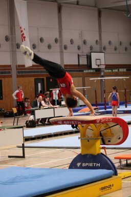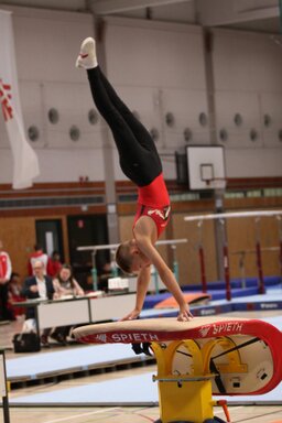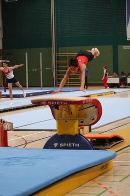 turnen. Erstes Gerät, der Sprung, die Oppauer turnen schwieriger (und damit haben