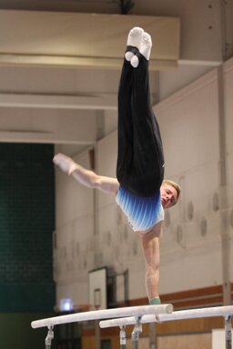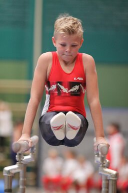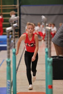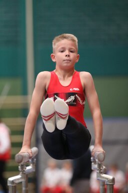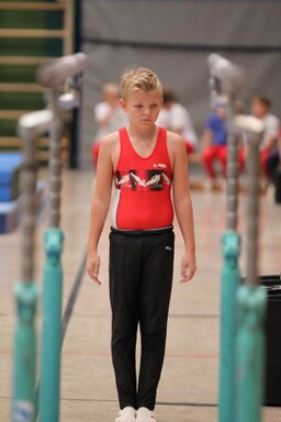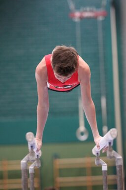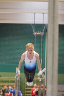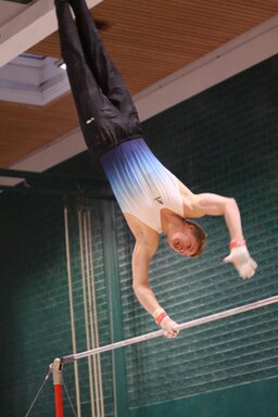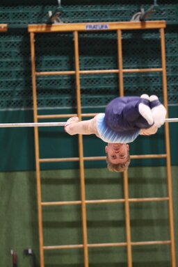 Zweites Gerät: Barren. Konrad, der erfahrendste und älteste, stürzt und