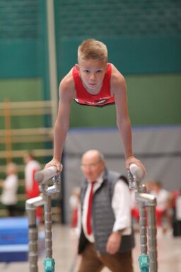 wechseln. Julius, Ältester der Gruppe, trat an allen Geräten und konnte 93,60