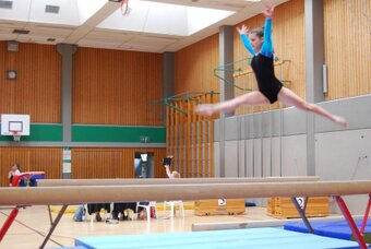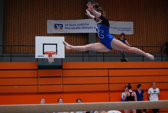 Am 12./13.05. fanden die Pfalzmeisterschaften im Pflichtbereich in Ramstein statt. Dort vertraten nur Emma Muck (Jg. 07) und Melissa Jacoby (Jg. 97) den TV Bad Bergzabern. Emma war bei den Gaumeisterschaften zum ersten Mal in einem Einzelwettkampf auf dem Treppchen gestanden und konnte sich auch nun wieder sehr gut präsentieren. Trotz eines Sturzes am Balken, konnte sie ihr Endergebnis im Vergleich zu den Gaumeisterschaften um einen Punkt verbessern und sich somit den 8. Platz in einem stark besetzten Wettkampf sichern. Bei ihrem Trainingsfleiß könnte sie nächstes Jahr auch durchaus noch weiter vorne landen. Auch Melissa hatte einen guten Tag erwischt und konnte mit sicheren Übungen den 5. Platz erreichen.
