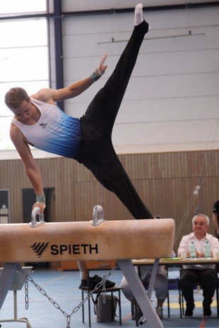 Wie oft trainiert er, der in Karlsruhe am KIT Maschinenbau studiert? Derzeit fünf Mal pro Woche (2x Wörth, 2x Bad Bergzabern und 1x Grünstadt), darunter ist nichts zu machen für ein so hochgestecktes Ziel. Lieblingsgerät? Eigentlich nicht. Als Allrounder muss man im Turnen alle sechs Geräte beherrschen. Am 3.8. wird er in Berlin mit dem Seitpferd beginnen, und wenn er nicht absteigt und alles klappt, wäre sogar die kleine Chance da, ins Gerätefinale zu kommen. Auch wenn er bis jetzt als einziger Turner aus Rheinland-Pfalz dabei ist (sein Mannschaftskamerad Justus Fröhlich aus Grünstadt könnte evtl. noch nachrücken), gegen die übermächtige Konkurrenz aus dem A-Kader wird es nicht leicht sein. Aber natürlich ist es schon ein Super-Erfolg, gegen die Besten antreten zu können. Und die Daumen für ein gutes Gelingen drücken wir ihm allemal.