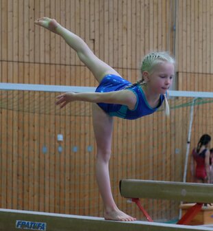 Mannschaftswettkämpfen im Herbst werden sie versuchen die Balkenübungen zu
