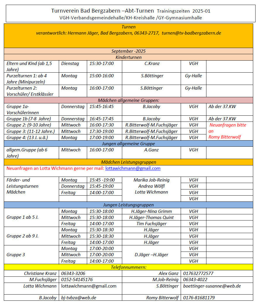 Trainingszeiten - Turnabteilung TV Bad Bergzabern